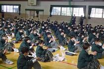 いよいよ3年生が登校するのは今日を含めて10日になりました。従来のような盛大な卒業式はできませんが、3年生にとって思い出に残る式にするため、まずは礼法の練習・確認をしました。厳粛な雰囲気の中で挙行される式です。全員が整然と行えるように心構えも含めて練習しました。