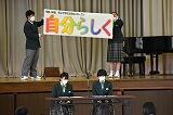 11/28~12/2が人権週間でしたが、それに併せまして、本日、講師の方をお招きして人権講話を実施いたしました。「思い込みによる差別」という題材でオンラインによる講話でしたが、話合い活動を取り入れてくださったり、内容も工夫してくださったりと、楽しく人権について学ぶことができました。話合い活動の際、講師の方が教室を巡回してくださり、生徒たちの様子をご覧になって、「とてもいい雰囲気ですね。」とお褒めの言葉をいただきました。この講話から学んだことを生かし、今後も、思い込みによる固定観念にとらわれず、いろいろな見方や考え方、様々な人がいることを意識しながら生活してもらえたらと思います。