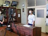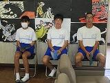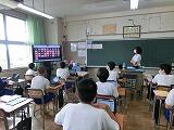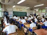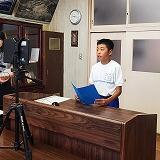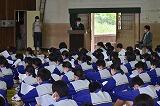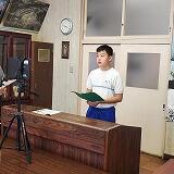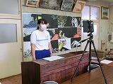 第1学期が終了し、夏休みに入りました。学校だよりでもお伝えしましたとおり、体育館改修工事に伴い、終業式はリモートで実施しました。最初に1学期に入選や入賞した表彰式を行いました。次の学校長式辞では、1学期に各学年へお願いしたことの振り返りをした後、校長スローガンである「日々進化~今日の自分は昨日を超えろ~」について説明しました。また、目標設定の仕方等についても、「自分のレベルより、やや少し高い目標を設定し、その目標達成のために、より具体的な取組を考えてください。できれば長く続けられるよう無理なく継続できる内容にしましょう。」とアドバイスしました。その後、生徒代表作文発表があり、生徒指導主事から夏休みの過ごし方についてお話がありました。