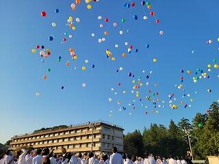 最後のフィナーレで、雲一つない日本晴れの青空に舞い上がっていった色とりどりの風船は、今年の生徒会のテーマ「自分らしく」の象徴のようで大変感動しました。吹中生全員が自分らしく更に成長していってくれることを期待しています。