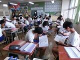 昨日から全学年で水泳の授業が始まりました。梅雨入りして天候が心配でしたが、今週は気温30℃超えということで、絶好のプール日和となりました。本校のプールは校舎から少し離れた所にあり、生徒たちは休み時間になると嬉しそうに急いで移動していました。少し古くなってきましたが、自分たちで清掃して青く輝いたプールで泳ぐのはさぞかし気持ちがよいことでしょう。張り切りすぎて、午後の教室での授業が眠くなってしまうのが少し心配です。期末テストが控えていますので、気持ちを切り替えて頑張ってください。