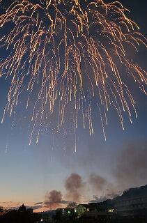 昼食後には、和太鼓の演奏、ダンスの発表、演劇、クイズ、いぶステ(自由発表)が行われ、クロージングの後、校舎前で打ち上げ花火を見て、充実した一日が終了しました。