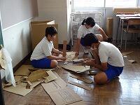 9月17日(水)5・6時間目にいぶき祭準備が行われました。今回は、演劇担当の準備の様子をお伝えします。小道具担当の生徒たちは、花束を作っていたり、段ボールをカットして組み立て頭に被ってみたり、縄を編んでいたり。キャスト担当の生徒たちは、体育館の舞台を使って台本を片手に立ち稽古をしていました。