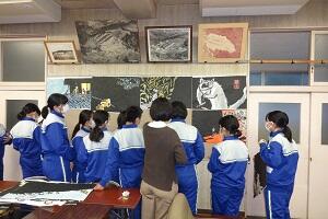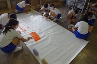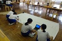 来年栃木県で開催される国体の応援の「のぼり旗」を3年生がデザインし、代表の生徒がマジックを使って制作していました。1組が神奈川県、2組が新潟県、そして3組が栃木県です。割り当てられた県の特徴を表すような絵を加えてきれいに仕上げてくれていました。