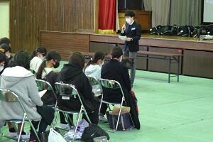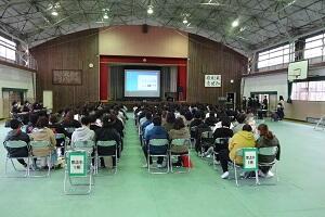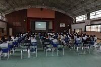 2年生の学年PTAを行いました。今回は10月に実施しました立志記念宿泊学習の報告と、進路に関する話でした。宿泊学習の報告は実行委員の生徒が分担して行いました。そして立志式についても映像を使って報告しました。後半は進路についての話で、来年の大まかな流れや手続きの仕方など、「真剣に考えてほしい。希望や夢を叶えてほしい。」という願いをこ込めての説明でした。
