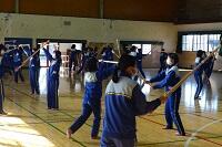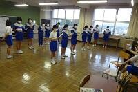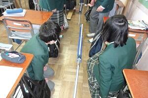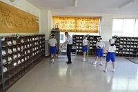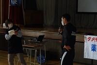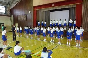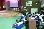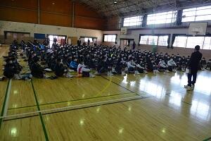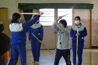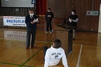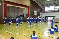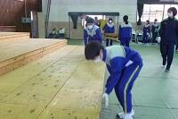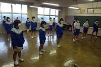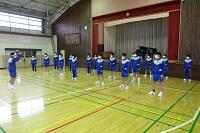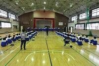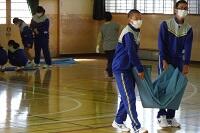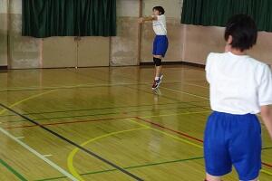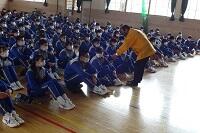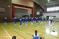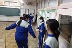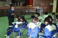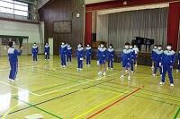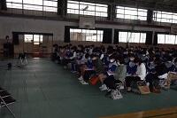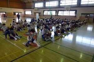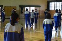 3年生の体育は女子が剣道をやっていました。冷たい体育館の床ですが裸足でがんばっていました。