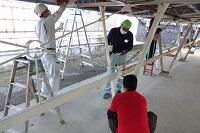親父の会の皆様に3回目の奉仕作業で自転車小屋の塗装をしていただきました。前回反面だけ塗った屋根の残りと小さい自転車小屋の柱と梁を塗っていただいて完了しました。3日間お世話になりました。見違えるようにきれいになりました。