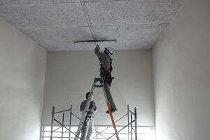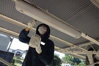 校舎の東階段と西階段のそれぞれ3階から4階のところの照明がLEDになりました。蛍光灯が点かなくなっていたところを器具ごと交換していただきました。