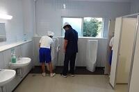 東側のトイレ工事をする前に設置されていた冷水機(コロナの関係で使用していなかった)を、東昇降口と体育館南入口に設置することになり、その工事が始まりました。
