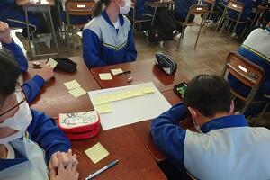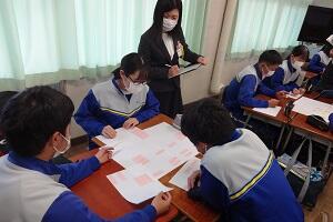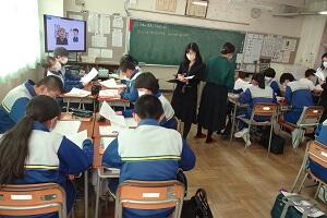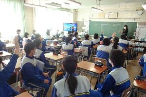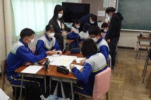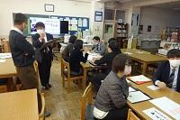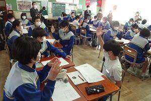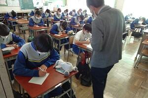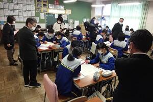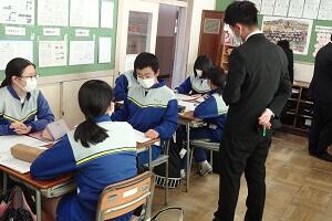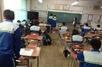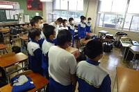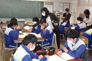 市の教育委員会から講師の方をお招きし、また小学校からも参観していただいて国語の研究授業を行いました。「合意を形成する」という授業でしたが、生徒たちは自分の考えを自信をもって発表し、友だちの意見を認めながら、自分たちなりの合意を形成していくという活動を活発に行っていました。