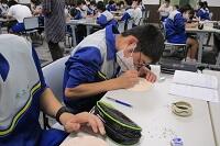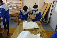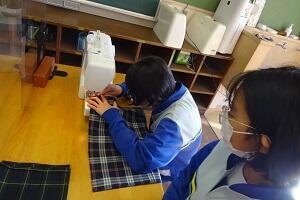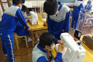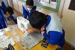 家庭科ではエコバッグを作っていました。ミシンやアイロンを使っていました。仕上がりはまだのようです。