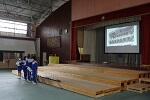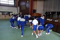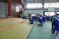 2年生は合唱のための雛壇を設置しました。