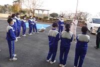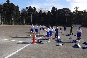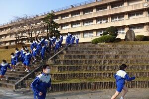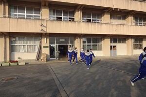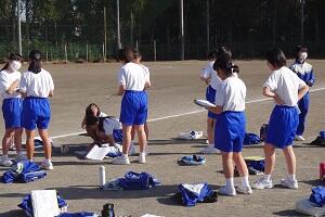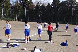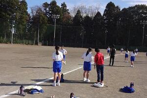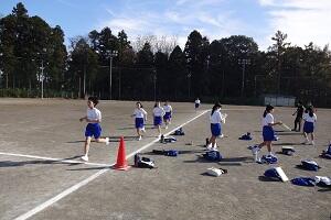 1年生の女子が長距離走の授業を行っています。ただ「長い距離を走りましょう。」というのではなく、最初に目標タイムを決めて、ペアを組んで走っている途中にタイムを教えてあげたり、励ましたりと、生徒たちは苦しいだろう長距離走も、走り終わると笑顔で友だちと話し合ったり、褒め合ったりして、楽しい授業になっているようです。