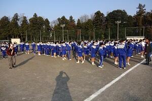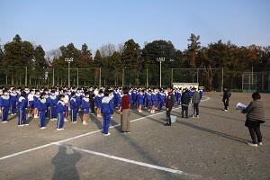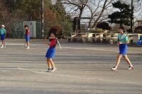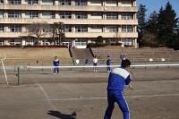 男子は外でソフトテニスでした。2時間目だったので凍っていたコートが溶けてきて大変そうでした。校庭下のコートも含めて6面、プラス野球のグランドに簡易ネットを置いて合計9面でやってました。