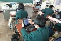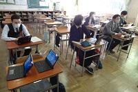 2年生は総合的な学習で進路について学習していました。「中学生活と進路」という教材と「高校案内」という本、それにタブレットを使って調べていました。自分の進路について真剣に考える機会となってくれるといいですね。