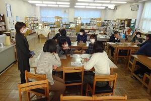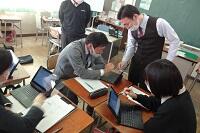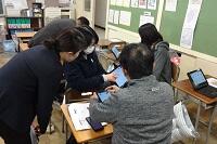 タブレットを使ってわかりやすい授業を行うために研究会をしました。先生役と生徒役に分かれてタブレットをどう使うとわかりやすいかなどについて話し合いました。