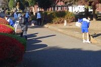 作業が終了して閉会式の場所に移動するとき、女子バレー部の部長さんから「袋に詰めていない落ち葉があるので閉会式後に片付けていいですか。」と申し出があり、最後まで作業をしてもらいました。これは日頃の指導と今回の活動の成果の一つだと思います。