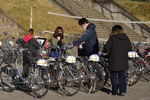 PTAの方のご協力をいただき、自転車点検をしました。
