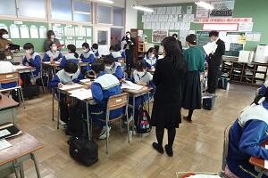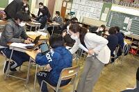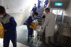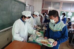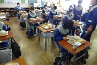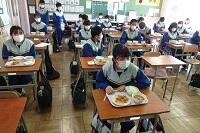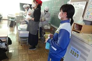 新型コロナウイルス感染症のオミクロン株による感染が拡大しています。給食は間隔を取って廊下に並び、消毒をしてから教室に入って自分の分の給食を当番から受け取ります。当然、前向き給食で会話はしません。早く和気あいあいと楽しく給食が食べられる日が来てほしいです。