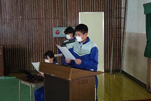 実行委員長 1年1組「地球星歌」 1年2組「ふるさと」