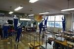 1年生の技術は木工をやっていますが、木工室の机は向かい合わせになってしまう上に、密になってしまうことから、廊下を挟んだ反対側にある金工室を整理して、距離を取って作業ができるように工夫しました。