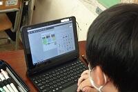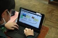 1年生の英語でタブレットを使って思い思いの街のMAPを作っています。当然ですが英語です。