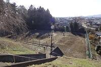 雨が降るたびに校庭の南側斜面から校庭の土と斜面の土が下にあるテニスコートの方に流れてしまっていました。そこで校庭南端から水路をつくって雨水がそこを流れるようにし、斜面を削らないように工事をしています。重機が入っての工事なので、生徒に危険が及ばないように注意を払って工事を進めています。