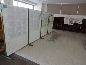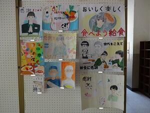 「『食』についての関心を高めるとともに、給食に携わる人や食物を生産する人々に感謝する心を育てる。」ことを目標に、今日(1/24)から金曜日(1/28)までの5日間を給食週間に設定しました。1年生と2年生がポスターと作文を、3年生が標語を作りました。