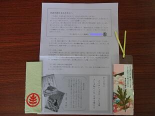 みなさんが立志を迎えられる記念に、吹上地区の地域資源であるさしも草を知ってほしいという思いを込めて、しおりをお贈りします。