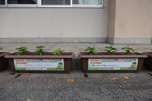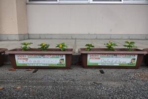 来年の「いちご一会栃木国体栃木大会」のためのプランター(試行栽培)ができあがりました。プランターにはアスリートへのメッセージを書いたシールを貼り、16個のプランターができあがりました。1枚貼り忘れていますが、すぐに完成させます。