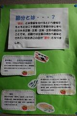 今日は節分なので給食に「ふく豆」がでました。本来は夜に家で豆まきをして、炒った豆を「年齢+1」食べると無病息災で暮らせるとされています。場所によっては落花生をまくところもあるようです。ちなみに給食には鰯もでましたが頭はなく、柊は食べるものではないのでありませんでした。