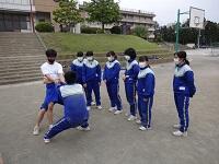 3年生が保健体育でバレーボールの試合をしていました。緊急事態宣言が発出されている中、熱中症に注意をしながら息が上がらないように短いインターバルで試合をしていました。