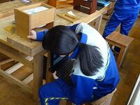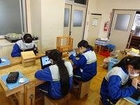 2年生でタブレットを使って技術の授業を行いました。metamojiを使って自分で作った木工の作品を写真に撮り文字を打ち込んで紹介しています。それがクラス全員分モニターに映し出され共有することができます。