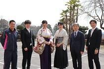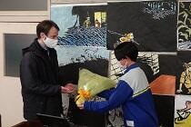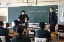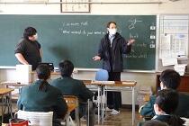 ALTの先生が今日が最終日なので代表が御礼の言葉を述べて花束を贈りました。