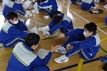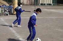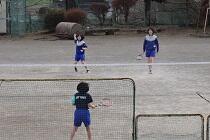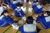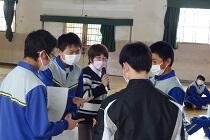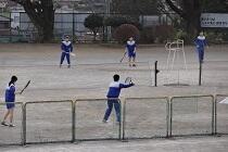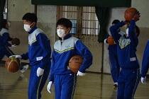 3年生が卒業し、最上級生となった2年生が体育をやっていました。よく見るとバスケットボールをやっている男子は、マスクはもちろんですが手袋もしています。