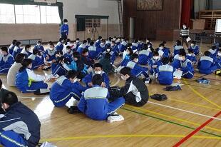 当初は2月17日に予定していましたが、新型コロナウイルス感染症によるまん延防止等特別措置が出され、栃木市でも感染者が増加していた状況から延期しておりました学校保健委員会を、本日、講師にスクールカウンセラーの先生をお迎えして実施しました。内容は「10代の友達付き合い」です。自己理解・他者理解を深め、対人関係スキルを身に付けることを目標に1年生対象で行いました。