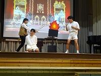 昼食後には、和太鼓の演奏、ダンスの発表、演劇、クイズ、いぶステ(自由発表)が行われ、クロージングの後、校舎前で打ち上げ花火を見て、充実した一日が終了しました。
