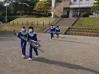 いぶリンピックで使うテントの準備をするため、まずは骨組みだけをいぶき館から運び出しました。男子テニス部、野球部、男子バレー部、ハンド部の生徒たちが進んで作業をしてくれたお陰で、あっという間に運び出すことができました。金曜日に組み立てる予定です。
