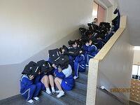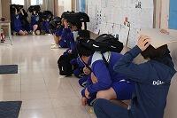 10月27日(月)竜巻に対応した避難訓練を行いました。吹上中学校の南方から竜巻が接近しているという想定で、南側の窓から離れて、窓ガラス等の飛んできた物からバッグで頭を守れるようにしました。放送を聞いて素早く移動し、頭を守る体勢を取ることができました。