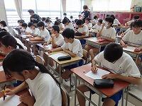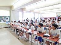 7月4日(金)1年生が、本校の生徒指導主事から、SNSの良い利用の方法や巻き込まれやすいトラブルについて話を聞きました。話の中にあった2つの事例について真剣に考え、一人一人が自分の意見を書くことができました。