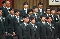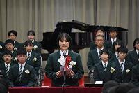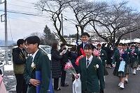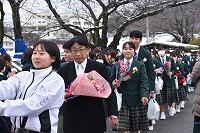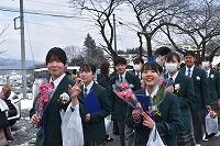3月10日(火)朝から降り始めた雪が積もる中、15分スタートを遅らせて吹上中学校として最後となる第79回栃木市立吹上中学校卒業式を行いました。厳粛な雰囲気の中、一人一人に卒業証書を授与し、栃木市長大川秀子様、PTA会長渡邉敏和様からあたたかいお祝いの言葉をいただきました。在校生代表の「送辞」には、卒業生との思い出と感謝、卒業生が引き継ぎ繋いでくれた79年の伝統を在校生が引き継ぎ、新たな伝統を築いてくれることを感じさせてくれる言葉が綴られていました。卒業生代表「答辞」には、充実した3年間の思い出と支え励ましてくれた保護者やお世話になった方々への感謝と今後の人生に向けての決意が感じられました。式後に卒業生合唱「ここにしか咲かない花」が披露され、歌詞の一つ一つが心に染みる合唱でした。卒業式が終わるころには雪も止んでおり、気温は低い中でしたが校庭での見送りができ、卒業生の笑顔がとても晴れやかでした。卒業生の前途に幸あれと祈念いたします。