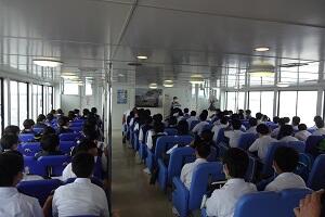 最終日の予定は松島で観光船に乗って島を見ることと、その舟の中で震災の話を聞くことでした。話を聞くまでは、観光船で震災の話をする担当の方だと思っていましたが、実際に津波を体験し、家族を亡くされた方だと聞いて驚きました。島のことをクイズを交えながら説明し、震災・津波の話も重苦しくなく、自分の経験から「中学生には、こう生きて欲しい」というようなメッセージをいただいた感じがしました。