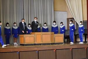 3月に行われた日立杯のハンドボール大会で女子が準優勝しました。その表彰と前期学級委員長、副委員長の任命を行いました。コロナ禍ですが、学級の代表、学年の代表という自覚と意気込みを感じる返事が聞かれました。特に3年生は学校の代表にふさわしい態度で頼もしく感じました。