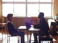 この日は、いつも本校を訪問して英語の授業をしてくれているALTではなく、市内の別の学校を訪問しているALTと1対1で英語をつかってコミュニケーションを楽しみました。自分の番になるまで待っている間は緊張していた生徒たちでしたが、初対面の外国人(ALT)と学年ごとのテーマに沿っての会話を終えて教室から出てくる生徒たちの笑顔がとても印象的でした。