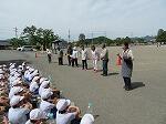 始まりには1、2年生顔を合わせあいさつをしました。