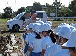 2年生は、生活科の勉強で運動公園に行きました。地震が起きると、家が崩壊するだけではなく、電柱や塀や自動販売機なども倒れてくる危険があることを学級活動で学習しました。登下校中地震が起きた時には、どんな危険が起こるのかを考えながら、運動公園までの道のりを歩きました。途中に電柱があり、「地震が起きた時には、倒れてくるから危ない。」とかカーブミラーの横を通ったときには、「これも危ない。」という声が子どもたちの中から出ました。