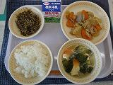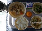 <今日の給食> ご飯・牛乳・里芋の肉味噌煮・白菜の昆布漬け・にらのかき玉汁・みかん