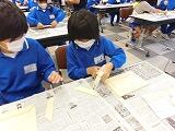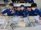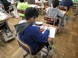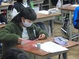 総合「吹上地区の高齢者とともに」や道徳「見えない人に幸せを」などでも点字については学習しましたが、今日は、「点字盤」「点筆」を使って実際に点字を打つ活動をしました。