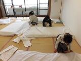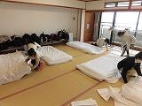 お世話になったとちぎ海浜自然の家とも今日でお別れ。自分たちで使ったシーツやまくらカバー、毛布などは、自分たちで片付けます。折り目の向きや重ねる順番などを意識しながら、生活班で協力して行いました。