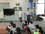学校では、2校時に5年2組で、3校時には1組で、社会科学習の一環として、防災教育の授業を、市役所危機管理課の職員2名と吹上公民館長様を講師として行いました。